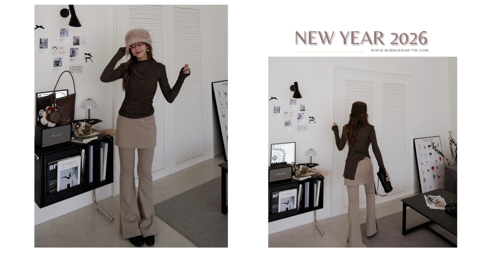 NY26/卯丁小裙擺瘦腿喇叭褲