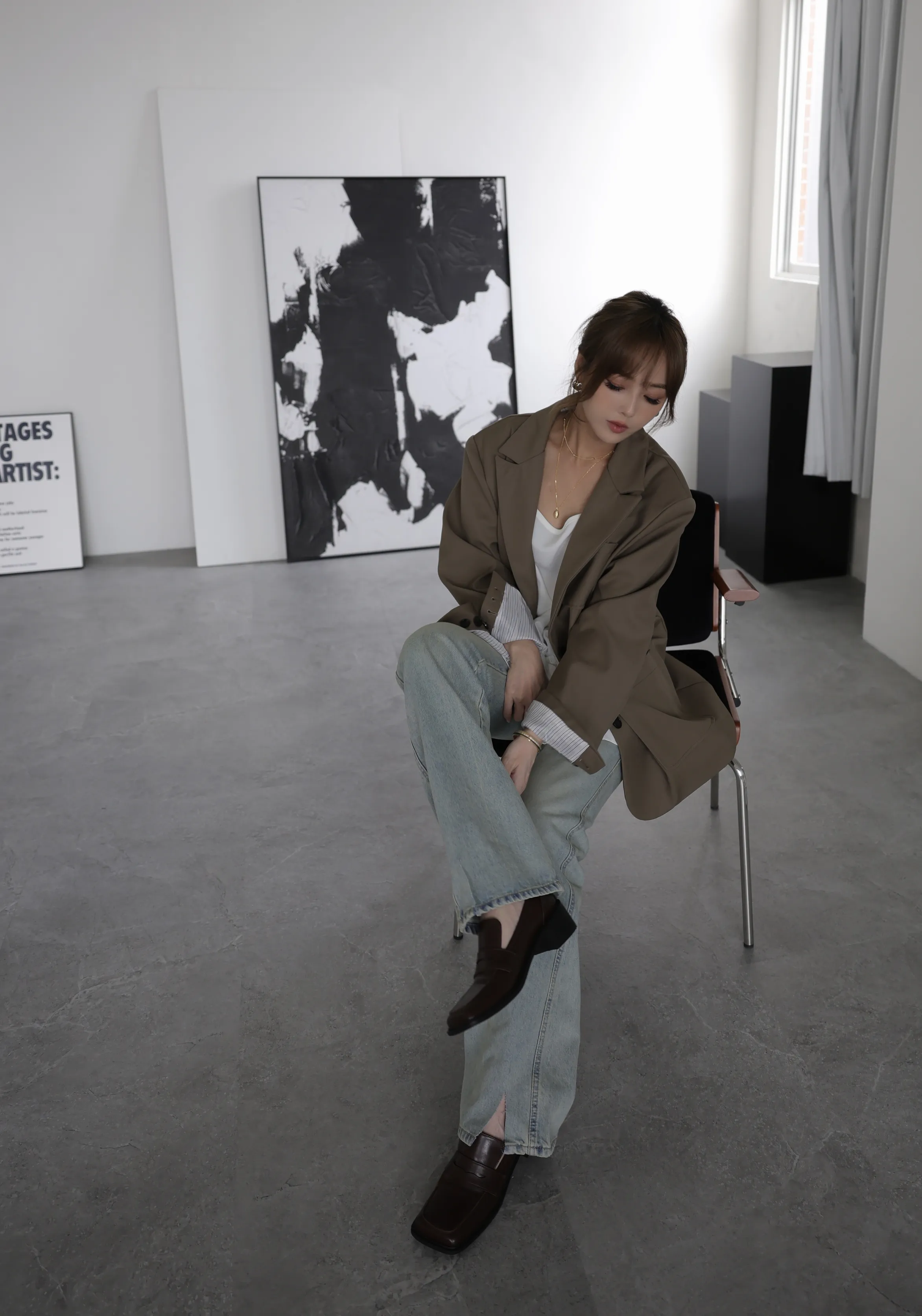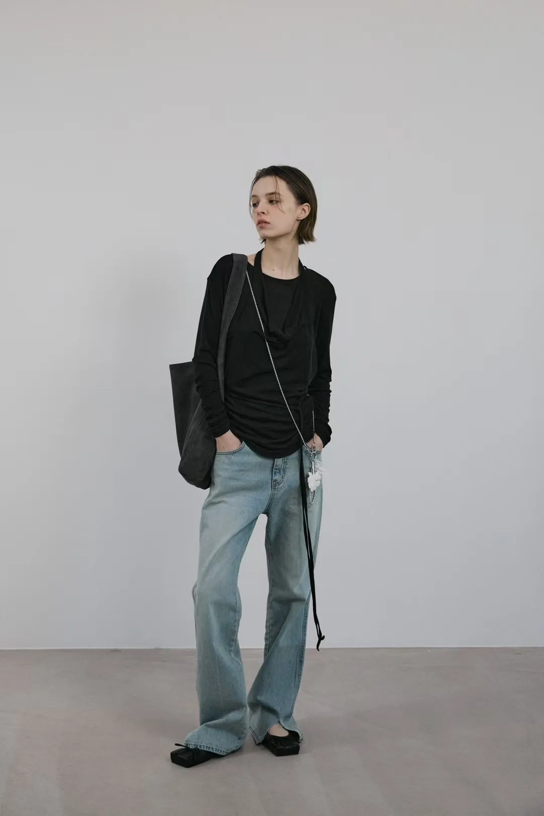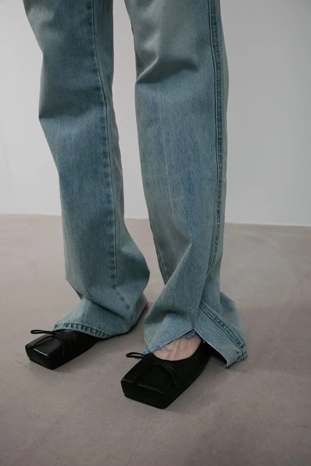 F23/下剪破長腿女孩修身牛仔褲
