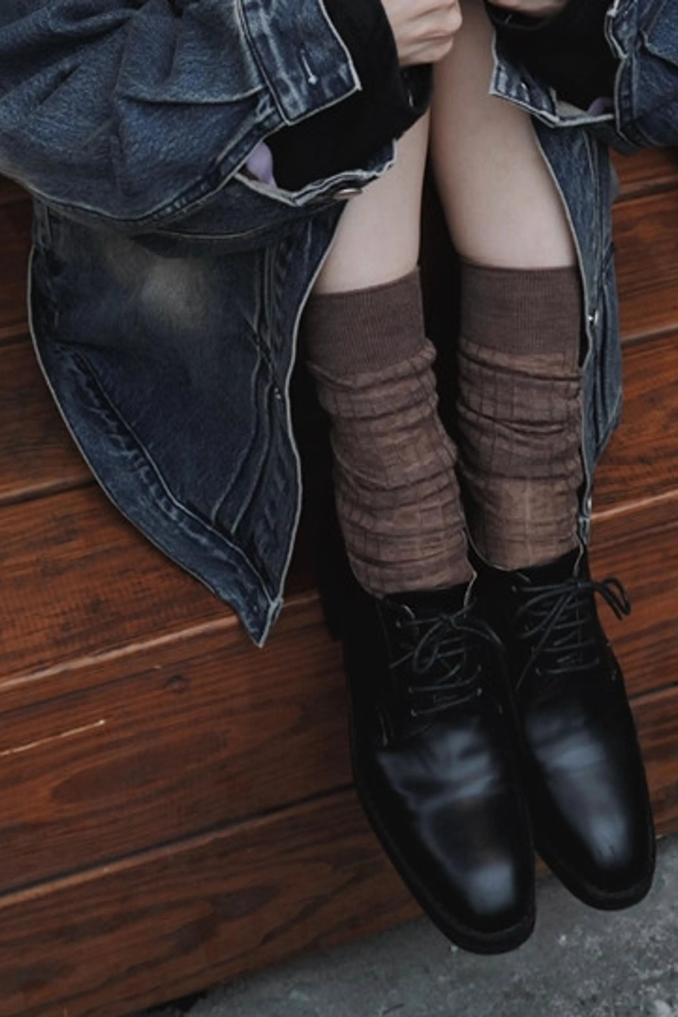 F40/miu系羊毛透感坑條長襪
