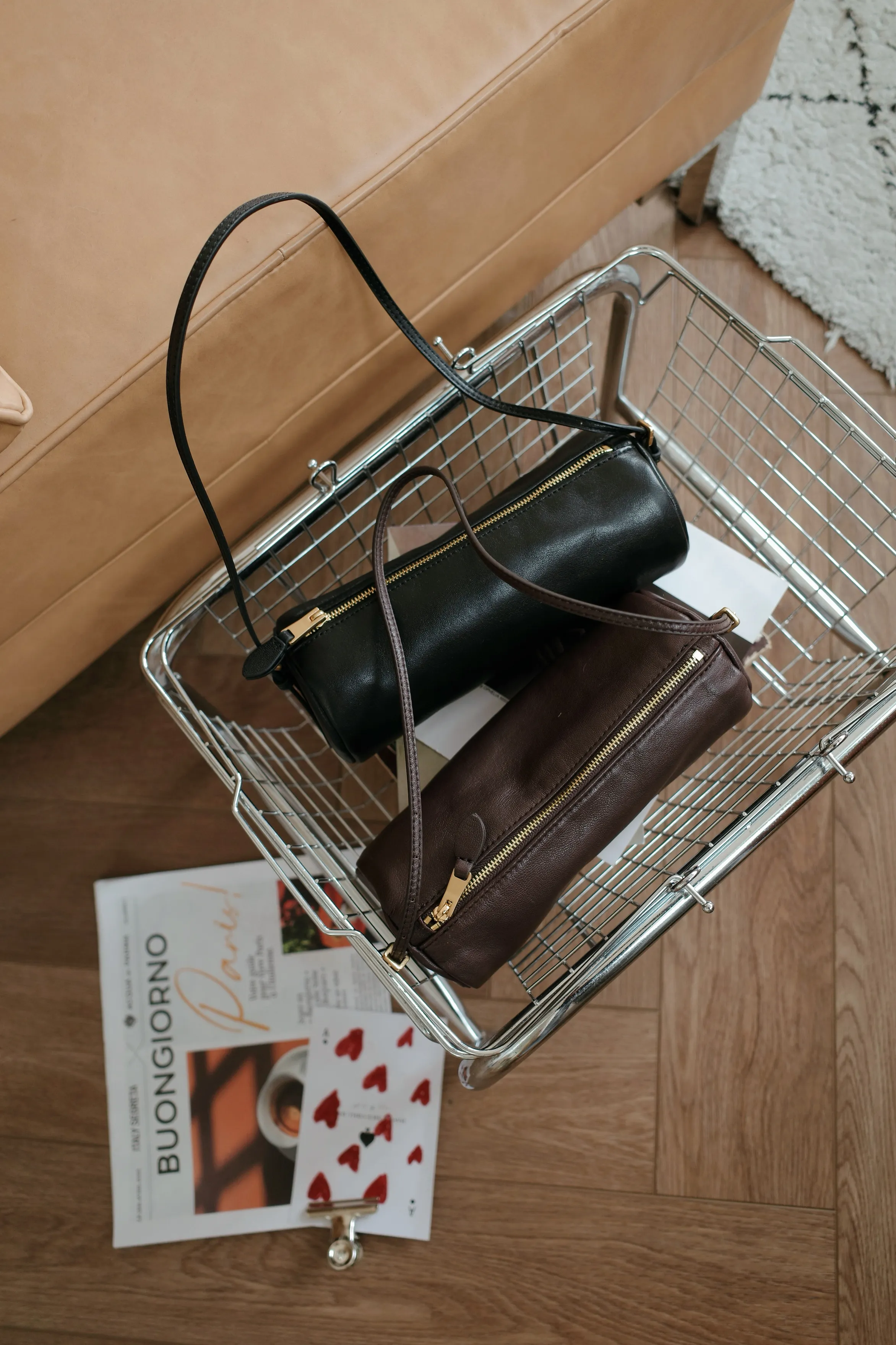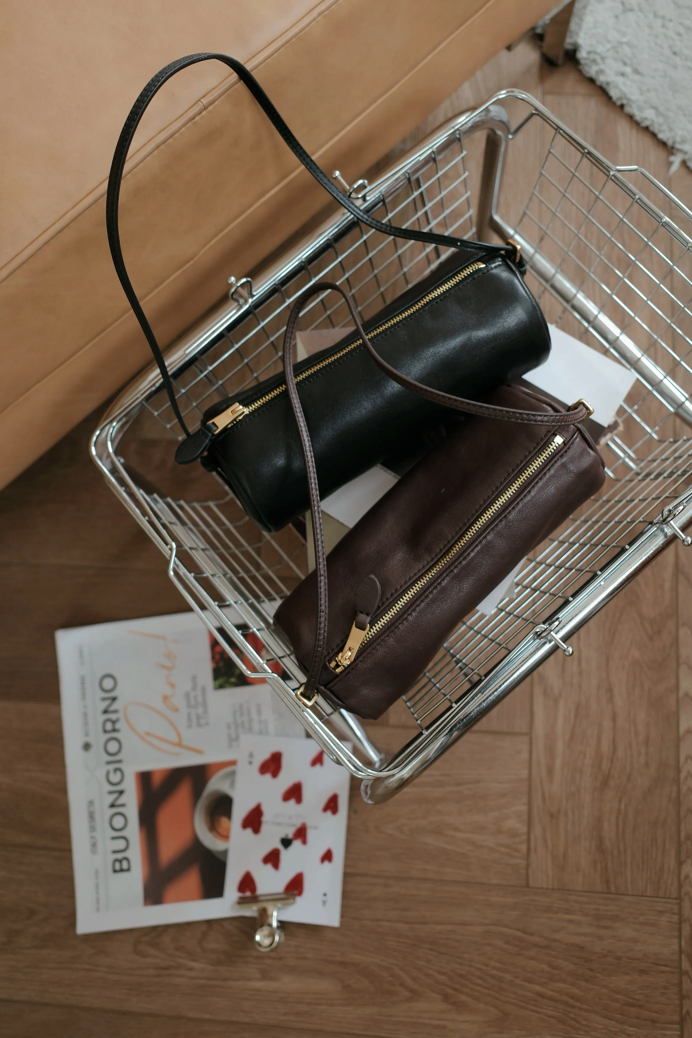 NY45/牛皮金釦筆桶包
