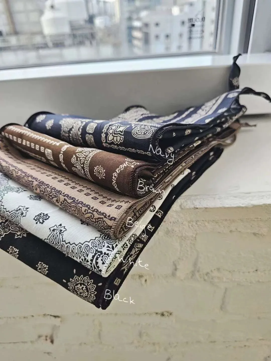 S07/新款圖騰捲邊三角絲巾