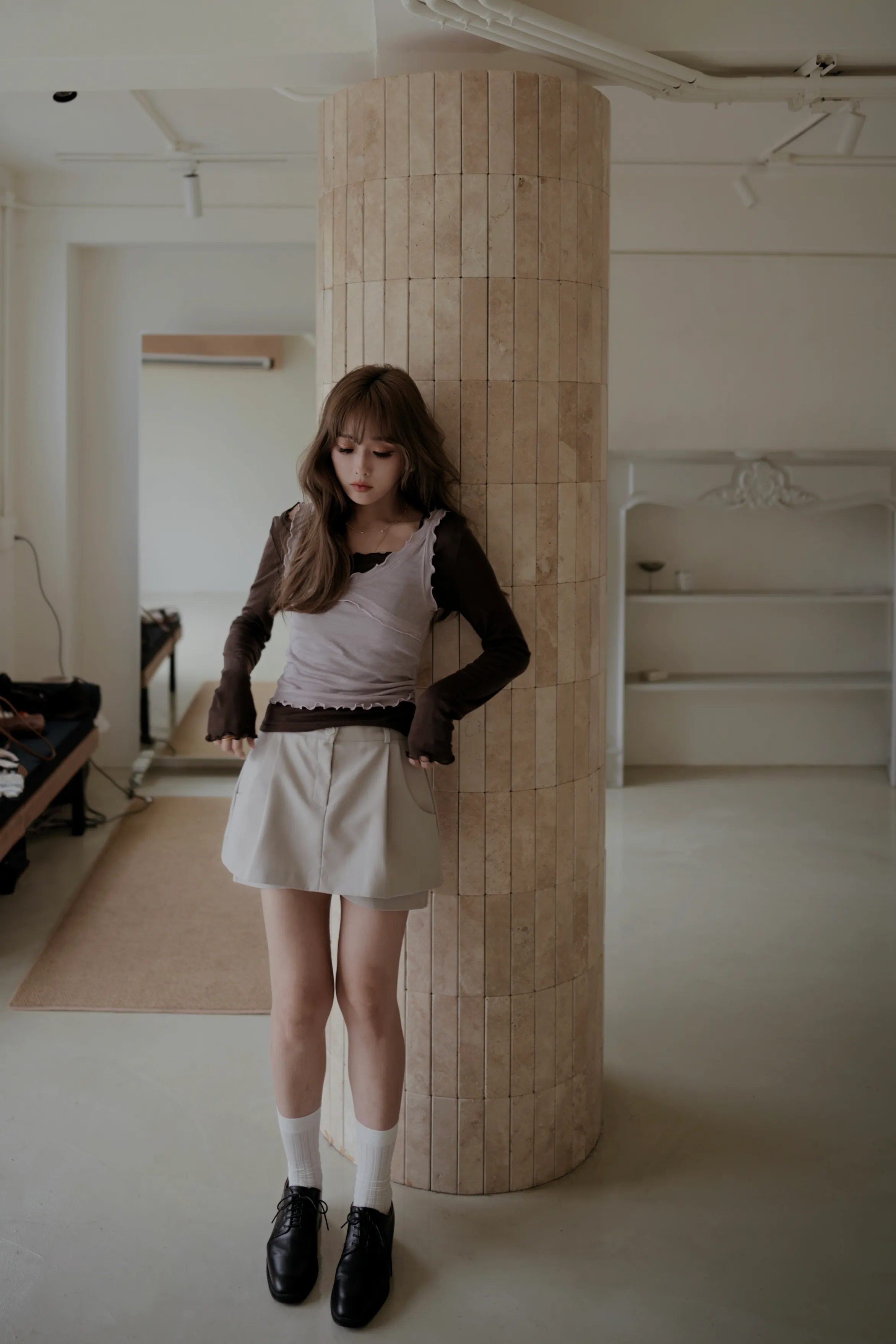 ab08/小捲邊大圓領打底上衣