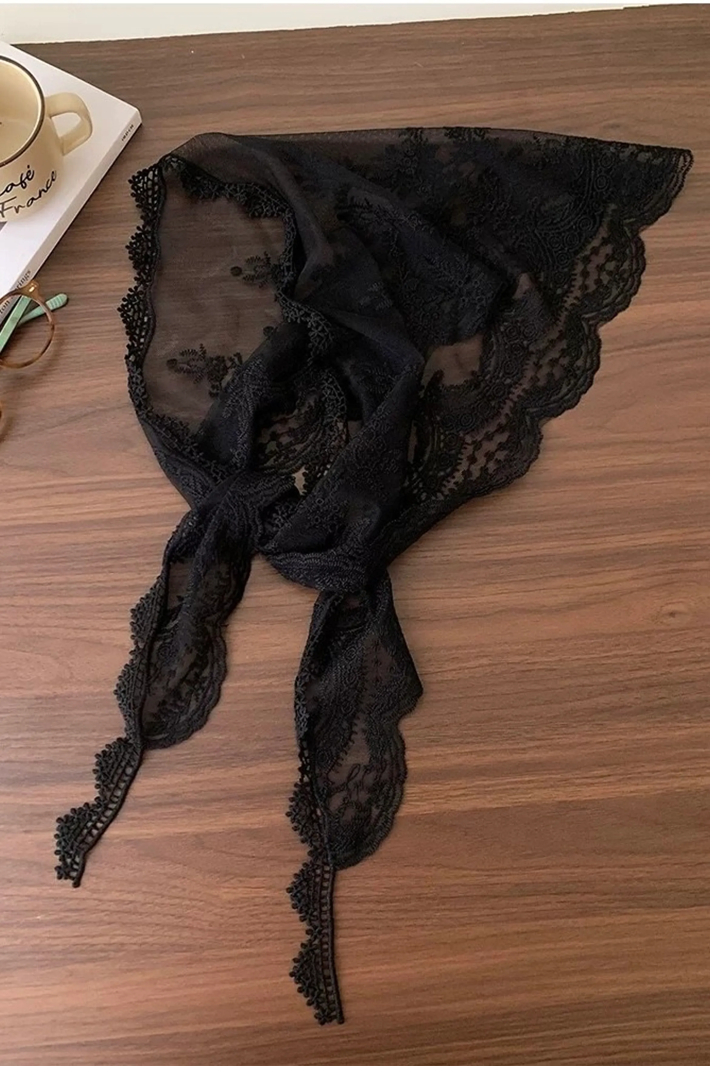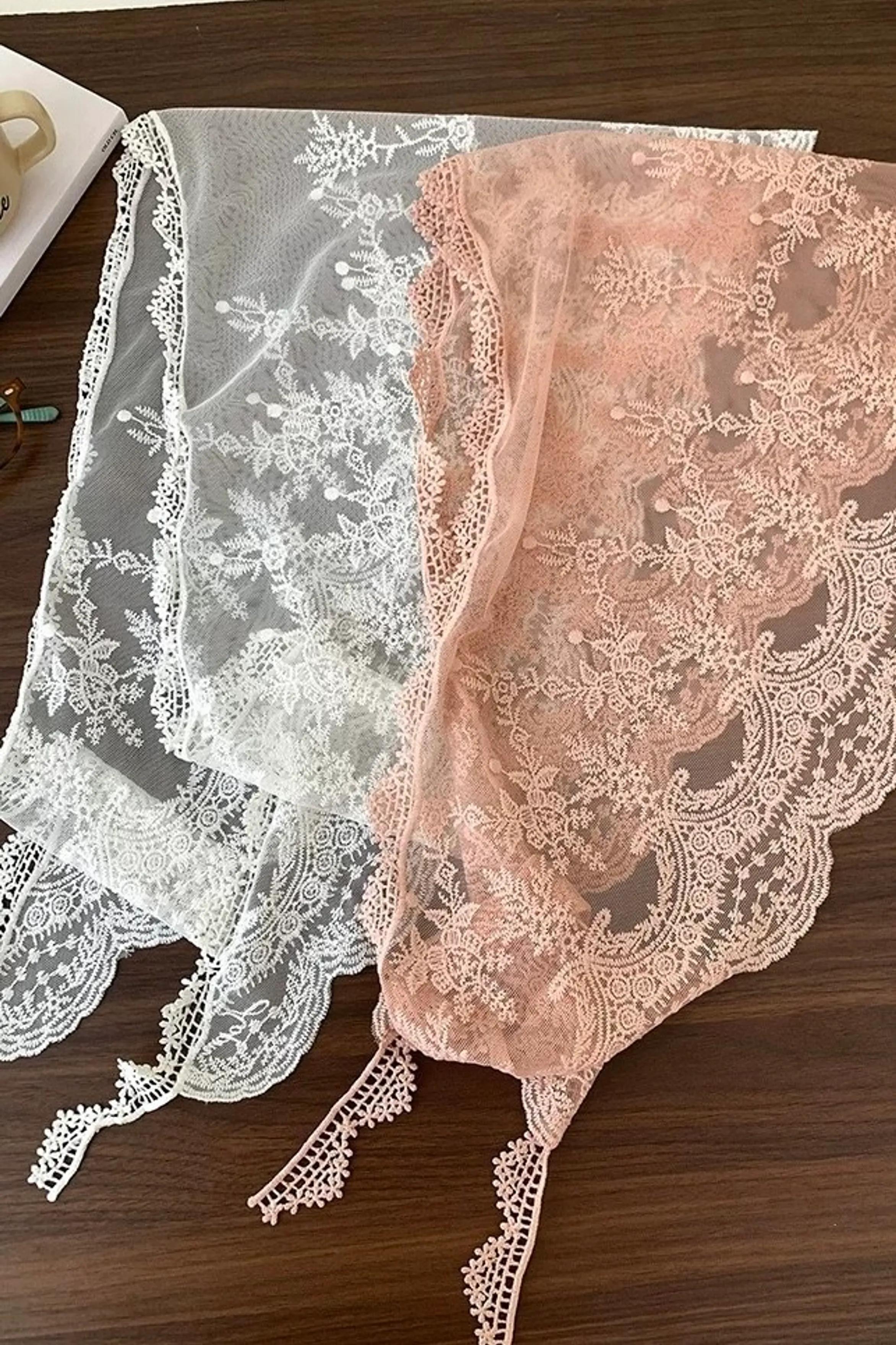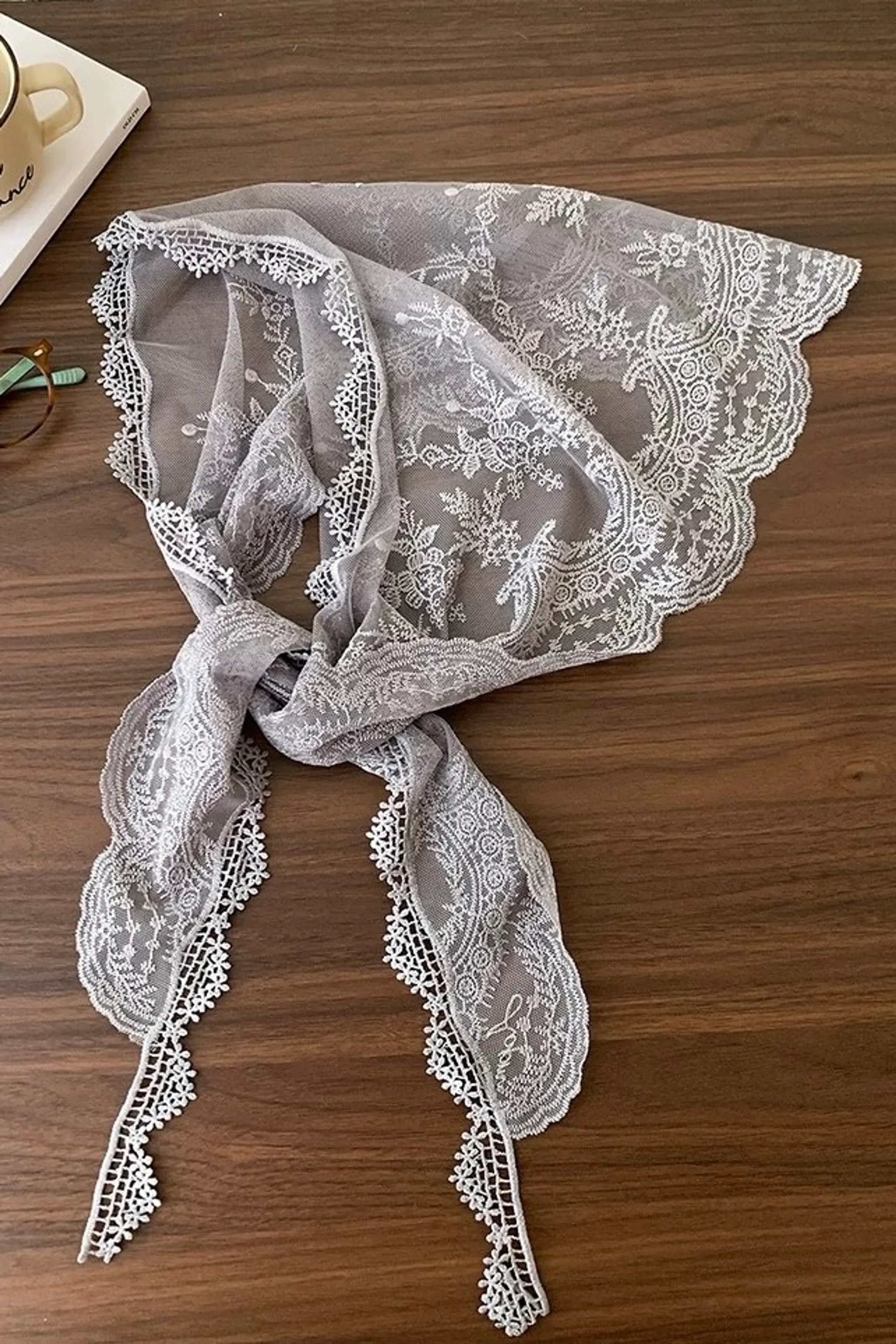 ab37/偏愛三角刺繡蕾絲絲巾