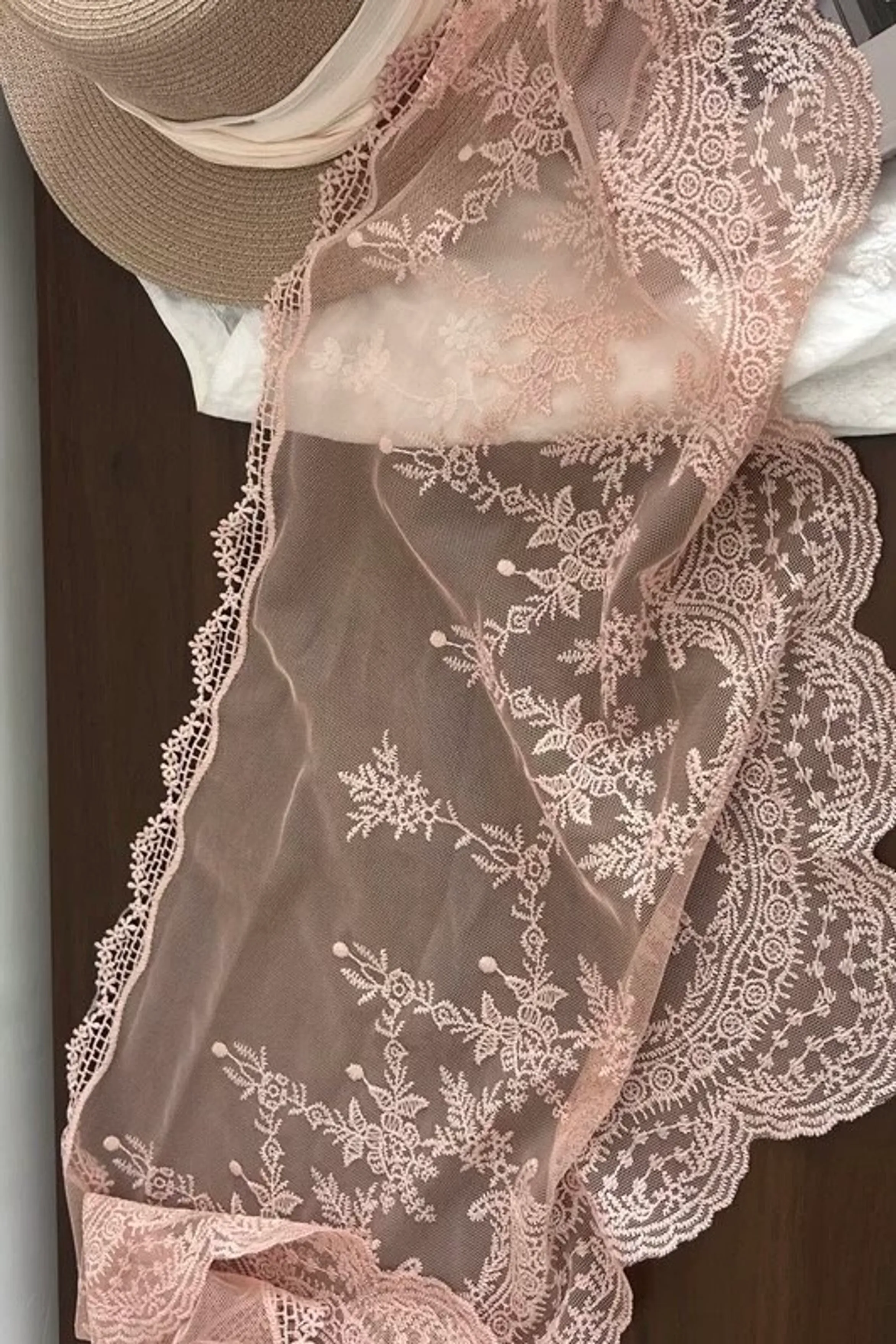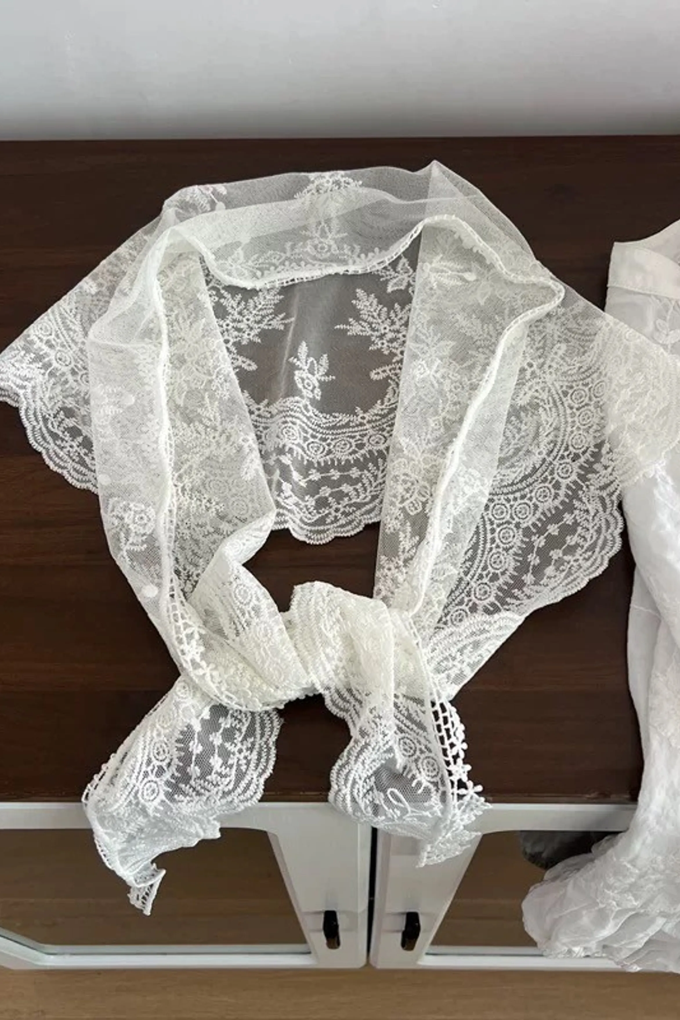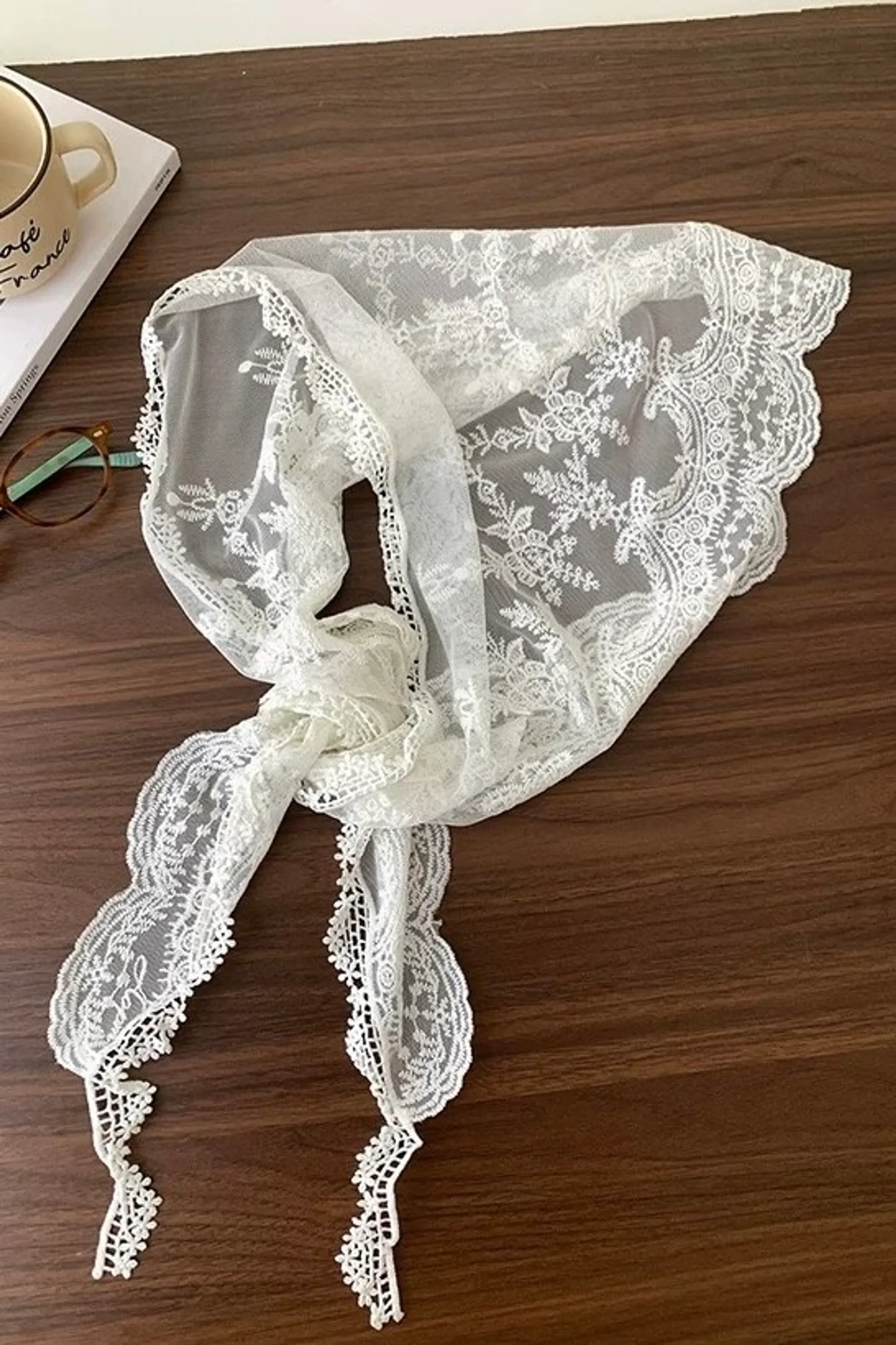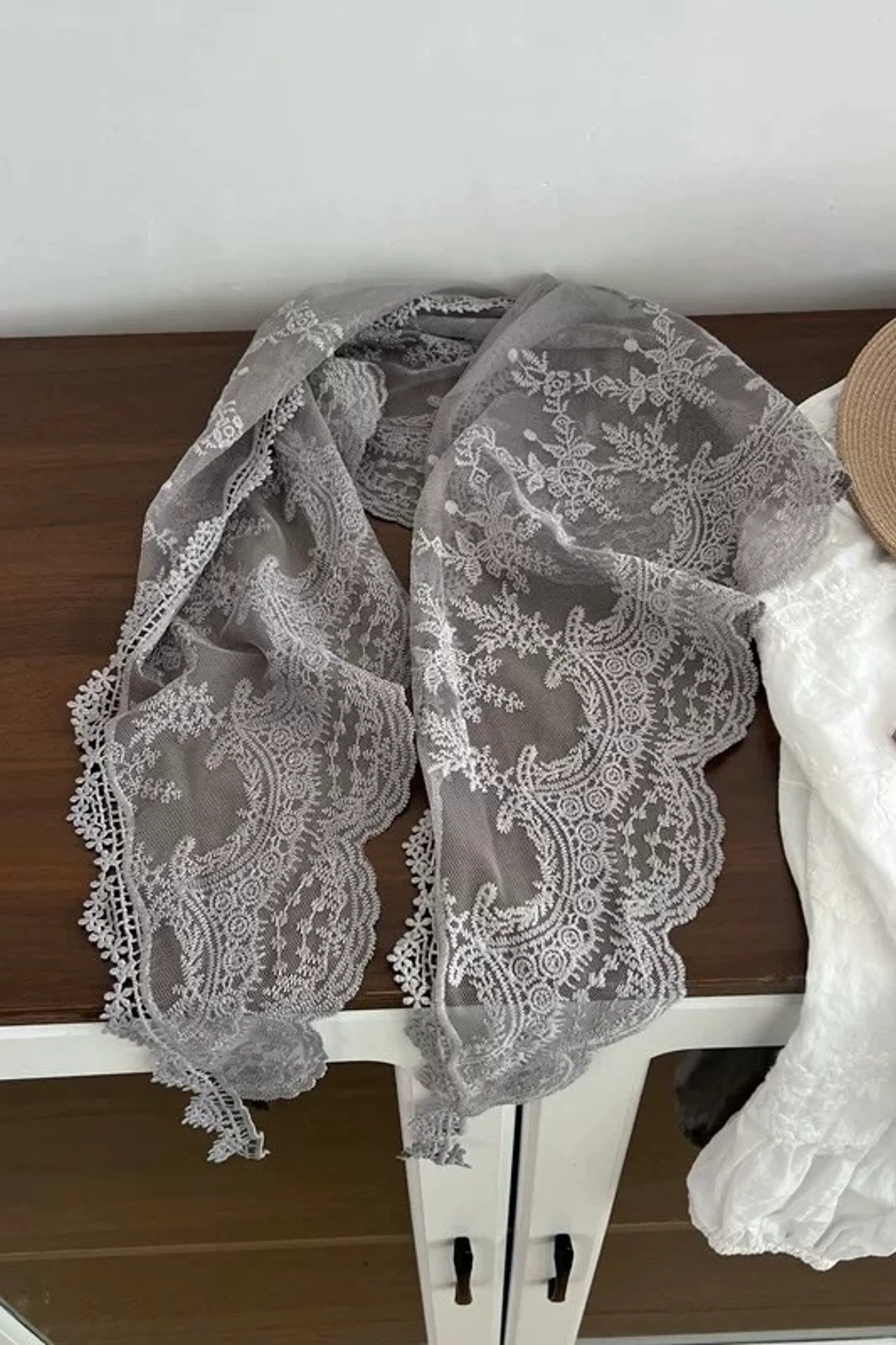 ab37/偏愛三角刺繡蕾絲絲巾