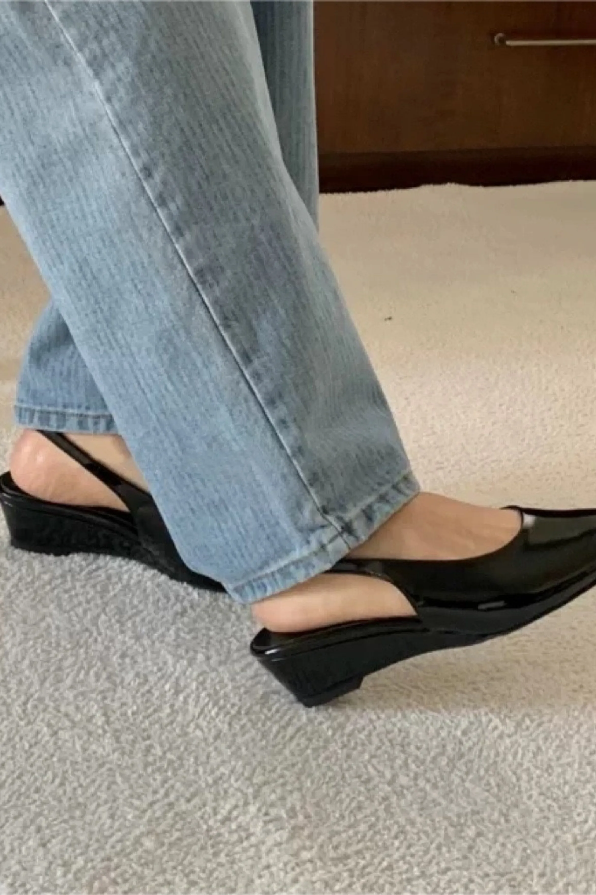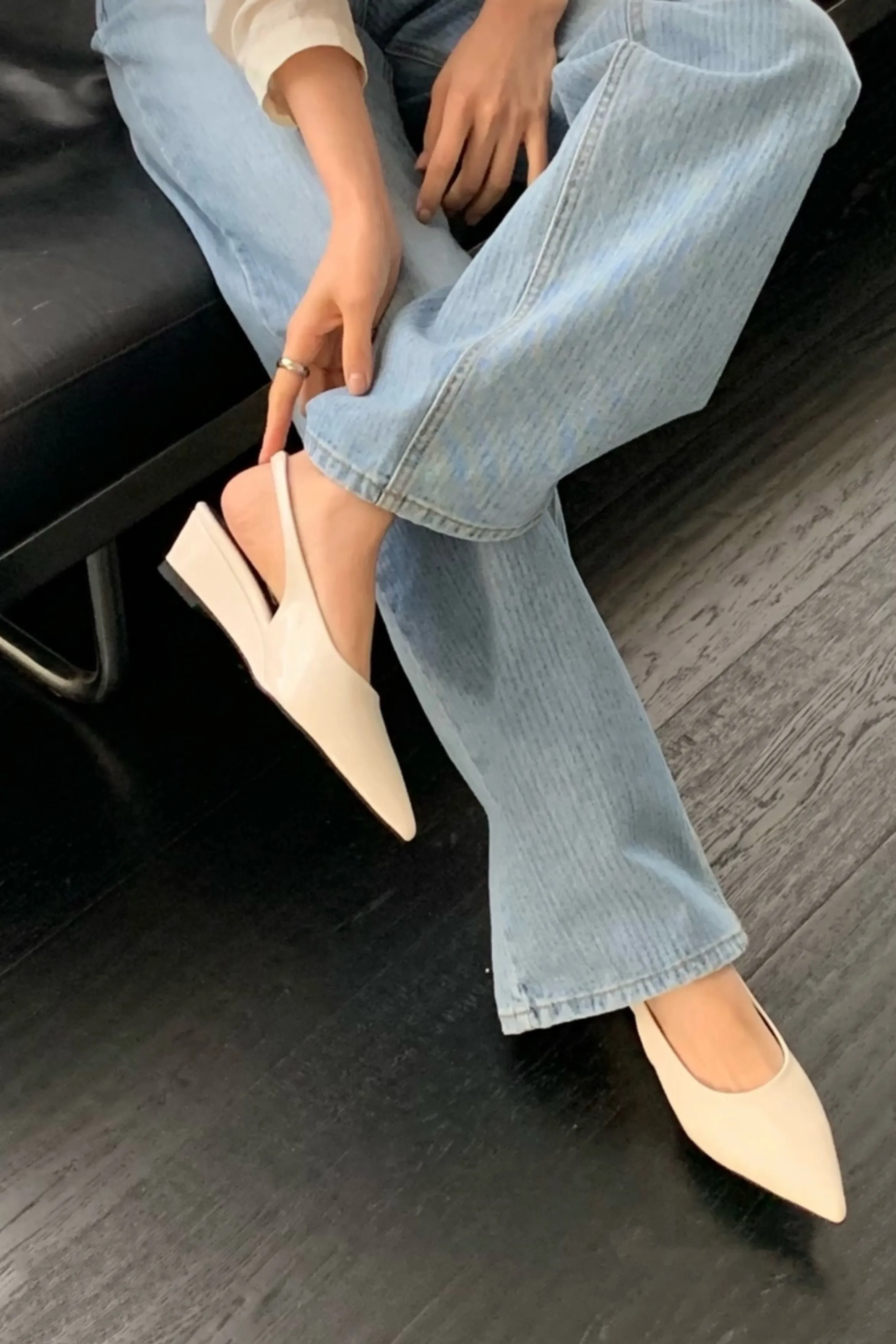 ga23/氣質手工釉光尖頭楔型鞋